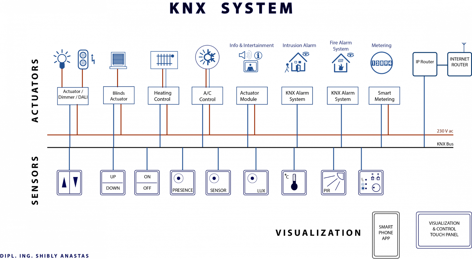 KNX là một giao thức tiêu chuẩn quốc tế dành cho hệ thống tự động hóa tòa nhà và nhà ở thông minh. Nó cho phép các thiết bị như đèn, rèm, điều hòa, an ninh và năng lượng giao tiếp và điều khiển lẫn nhau thông qua một hệ thống duy nhất, giúp tối ưu hóa tiện nghi, tiết kiệm năng lượng và nâng cao chất lượng sống.